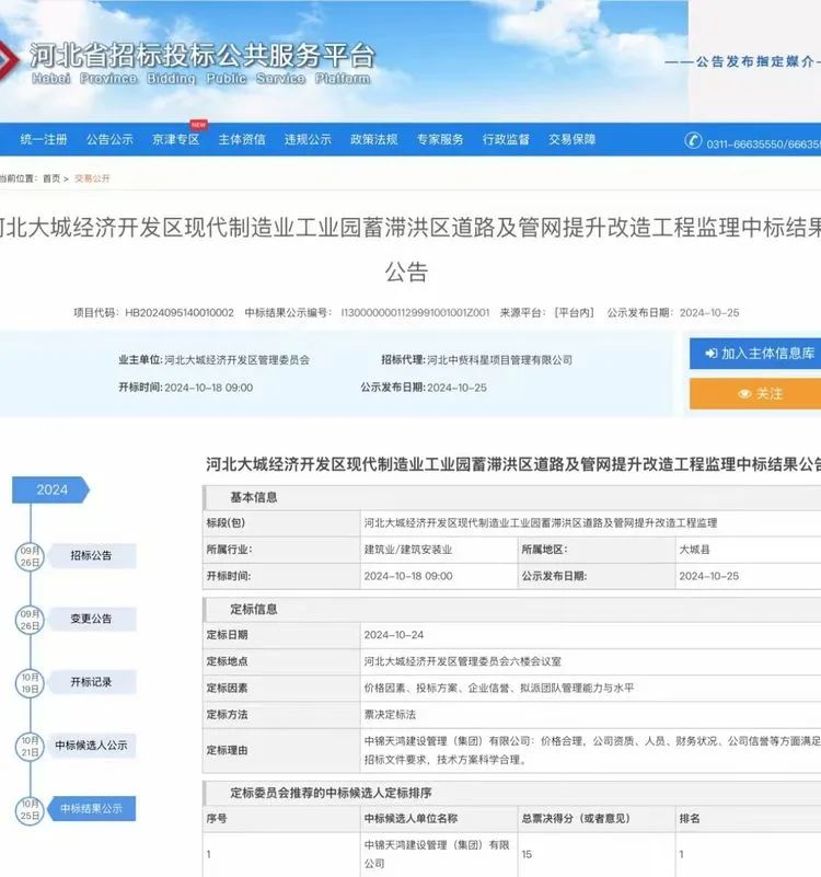 近日,河北省招標投標公共服務平臺發(fā)布了“河北大成經(jīng)濟開發(fā)區(qū)現(xiàn)代制造業(yè)工業(yè)園蓄滯洪區(qū)道路及管網(wǎng)提升改造工程中標結(jié)果”中標公示公告,經(jīng)評審專家綜合審定,中錦天鴻集團作為該項目中標單位。